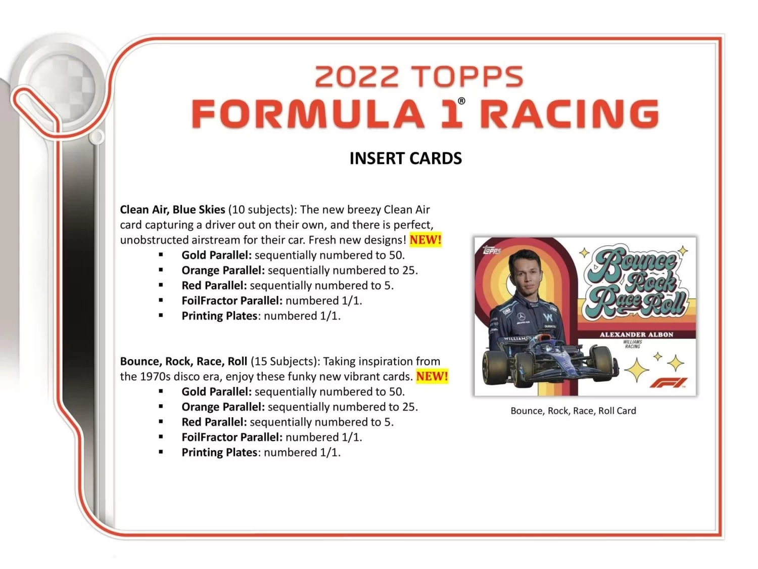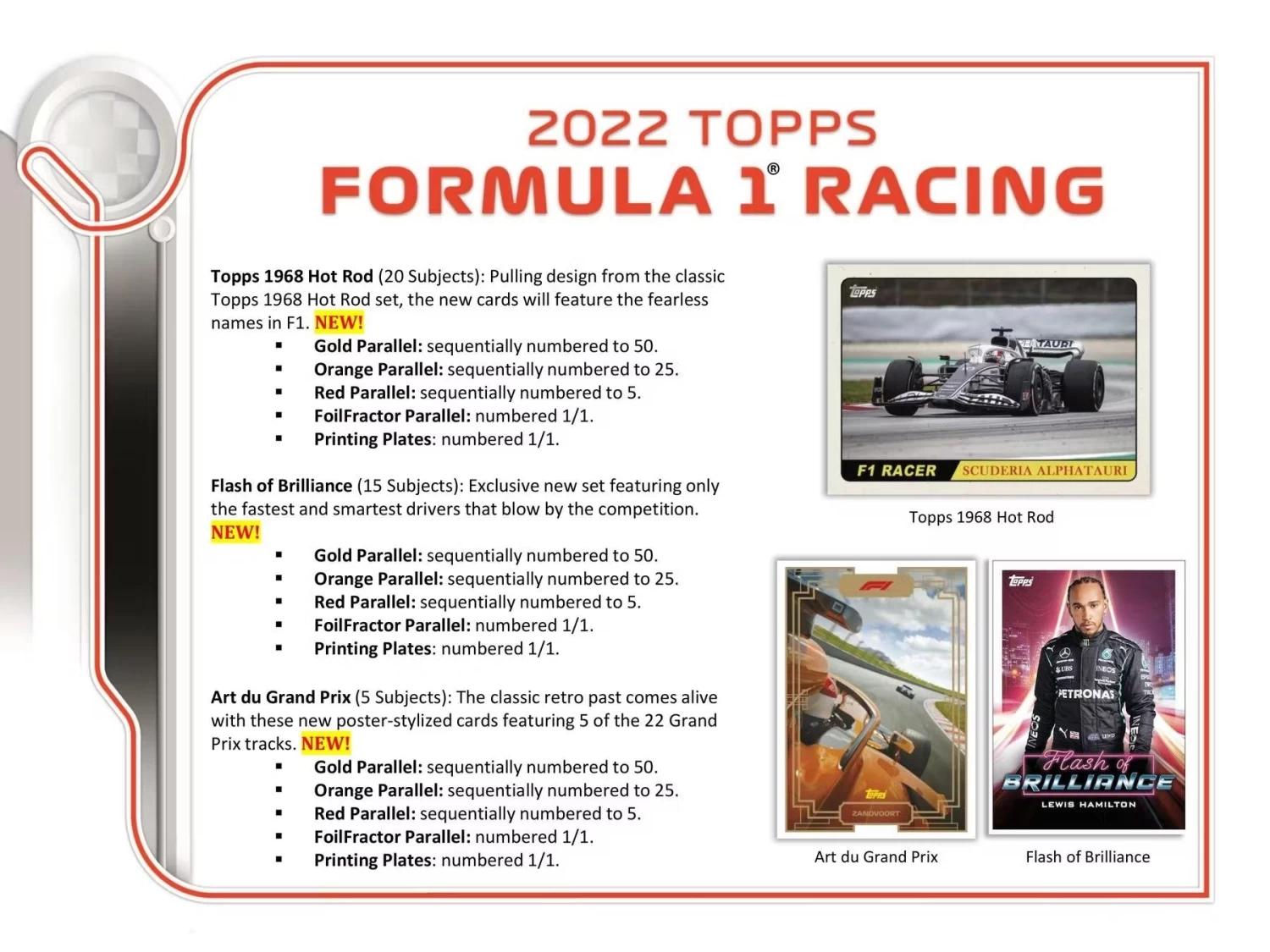 Topps 1968 Hot Rod (20 Subjects): Pulling design from the classic Topps 1968 Hot Rod set, the new cards will feature the fearless names in F1. NEW!