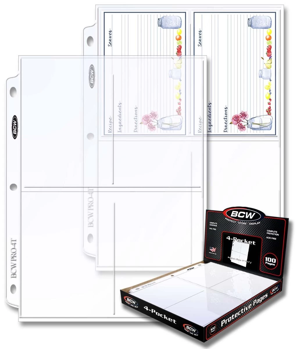 The BCW Pro 4-Pocket page is an acid free archival quality product that is perfect for storing 3½x5 photographs or postcards. This product features high-clarity polypropylene and top loading pockets with strong welds. BCW Pro 4-Pocket pages fit all standard 3-ring binders and albums. Use the 4 pocket page to protect, store, and display your valuable photos and postcards.