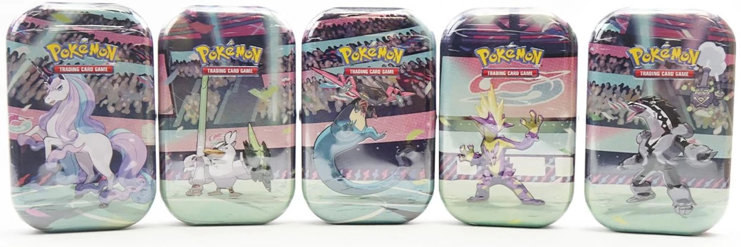 In each Galar Power Mini Tin, you’ll find:[2] Pokemon TCG booster packs[1] metallic Pokemon coin[1] Pokemon art card showing the art from this Mini Tin-you can collect and combine all 5!