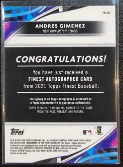 Andres Gimenez RC /99 – 2021 Topps Finest #FA-AG Finest Autographs Green Wave Refractor