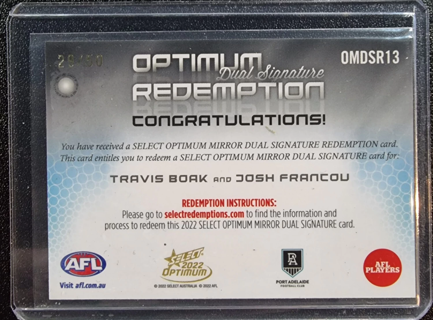 2022 Select AFL Optimum Mirror Dual Signature Redepmtion #OMDSR13