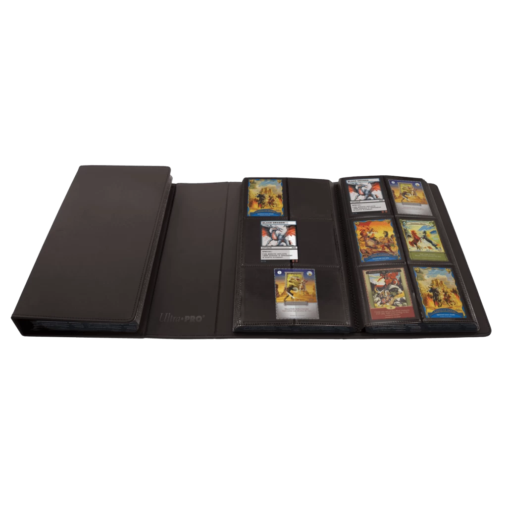 The Ultra Pro Black Premiere Playset PRO-Binder is designed for collecting and storing playsets of your favorite trading card. It features a NEW double-fold compact design. Each row holds 4-card playsets.